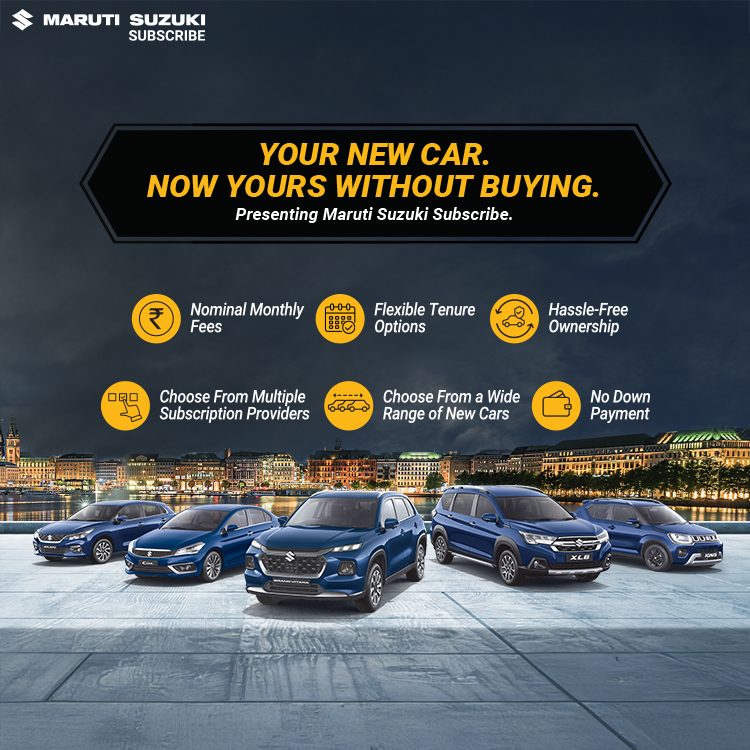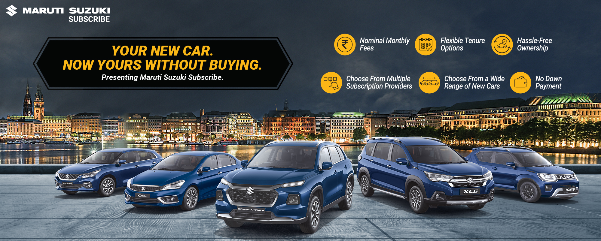 Maruti Suzuki Subscribe enables all customers to enjoy driving their preferred Maruti Suzuki cars without having to deal with all the financial responsibilities that come with owning a car.All you need to do is opt for a monthly subscription plan at a fixed monthly fee, which includes the routine maintenance and insurance costs, and choose a flexible tenure. At Starline Cars in, , Mehsana, all Hatchback, Sedan, SUV, the MUV models line-up includes Baleno, Invicto, EVitara, Jimny, Ciaz, Ignis, Fronx, Grand Vitara, XL6. Here, you will enjoy Maruti Suzuki Subscribe benefits such as: